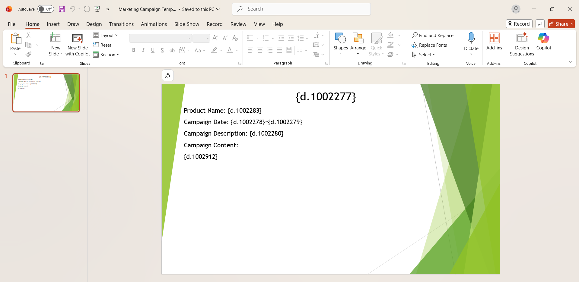 Next, you can modify the template to your desired layout, add or remove fields as needed, or convert it into an Excel or PowerPoint format. Refer to this section and this documentation for modification guidelines.